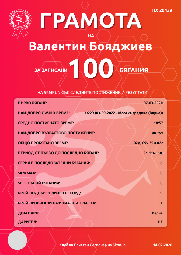 | Морска градина (Варна) | 632 | 14.02.2026 | 3 | 18:01 | 3 | 1 - 20-24г. | няма | 98 |