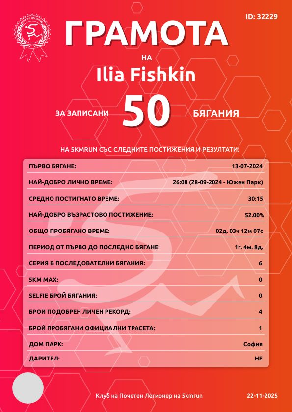 | Южен Парк | 590 | 03.05.2025 | 397 | 31:45 | 270 | 51 - 40-44г. | няма | 1 |