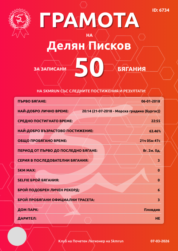 | Морска градина (Бургас) | 602 | 07.03.2026 | 18 | 22:58 | 15 | 6 - 35-39г. | няма | 86 |